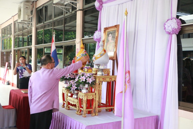 วันศุกร์ที่ 31 พฤษภาคม 2567 เวลา 08.30 น. โรงเรียนแม่แตงนำโดย นายธีรวิทย์ สุวรรณา ผู้อำนวยการโรงเรียนแม่แตง พร้อมด้วยผู้บริหาร คณะครู บุคลากรทางการศึกษา นักศึกษาปริญญาโทฝึกประสบการณ์วิชาชีพผู้บริหาร นักศึกษาฝึกประสบการณ์วิชาชีพครู และ สภานักเรียนโรงเรียนแม่แตง ได้จัดพิธีถวายพระพรชัยมงคลแด่สมเด็จพระนางเจ้าฯ พระบรมราชินี เนื่องในวันเฉลิมพระชนมพรรษา วันที่ 3 มิถุนายนของทุกปี โดยประธานได้เปิดกรวยกระทงดอกไม้หน้าพระฉายาลักษณ์ และลงนามในสมุดลงนามถวายพระพรชัยมงคล เพื่อแสดงความจงรักภักดีและสำนึกในพระมหากรุณาธิคุณ ณ บริเวณหน้าห้องสมุดเฉลิมพระเกียรติโรงเรียนแม่แตง
