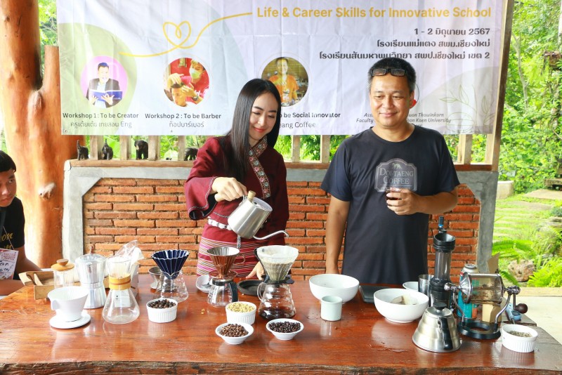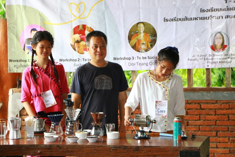 วันเสาร์ที่ 2 มิถุนายน 2567 เวลา 08.00 น. โรงเรียนแม่แตง สังกัดสำนักงานเขตพื้นที่การศึกษามัธยมศึกษาเชียงใหม่ ร่วมกับมหาวิทยาลัยขอนแก่น ดำเนินการจัดกิจกรรม Workshop On Innovator & Creator โครงการ “การพัฒนากลไกขับเคลื่อนสู่โรงเรียนนวัตกรรมสำหรับสถานศึกษาขั้นพื้นฐาน” เป็นวันที่สองโดยการจัดกิจกรรม Workshop ได้แก่กิจกรรม To be Social Innovator พัฒนาทักษะสู่การเป็นผู้ประกอบการทางสังคม โดยได้รับเกียรติจากคุณณรงค์ จักรแก้ว ร้าน Doi – Teang Coffee มาให้ความรู้เกี่ยวกับการประกอบธุรกิจร้านกาแฟ การทดลองคั่วกาแฟ การชงกาแฟ และการชิมรสชาติกาแฟ เยี่ยมชมสวนกาแฟ ตลอดจนสร้างแรงบันดาลใจในการเป็นผู้ประกอบการร้านกาแฟให้กับนักเรียน โดยมีนักเรียนและคณะครูที่เข้าร่วมกิจกรรมจากโรงเรียนแม่แตง สพม.เชียงใหม่ และโรงเรียนสันมหาพน สพป.เชียงใหม่ เขต 2 ณ ร้านกาแฟดอยแตง ตำบลเมืองก๋าย อำเภอแม่แตง เชียงใหม่