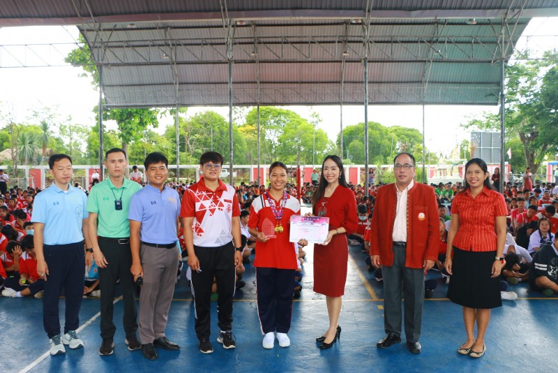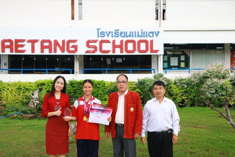 นายธีรวิทย์ สุวรรณา ผู้อำนวยการโรงเรียนแม่แตง พร้อมด้วยนายเฉลิมพล ดอนดี รองผู้อำนวยการโรงเรียนแม่แตง และนางสาวนภัสนันท์ วงศ์ทาเครือ รองผู้อำนวยการโรงเรียน ได้จัดกิจกรรมมอบเหรียญรางวัล เกียรติบัตร และโล่รางวัล ให้แก่นางสาว นัฐพร ธิเรือง นักเรียนระดับชั้นมัธยมศึกษาปีที่ 6/1 ที่ได้สร้างชื่อเสียงให้กับโรงเรียน ในการเข้าร่วมการแข่งขันกีฬายูยิตสู Chanthaburi Jujitsu Open 2024 ณ จันทบุรี ฮอลล์ ชั้น 2 ศูนย์การค้าจันทบุรี จังหวัดจันทบุรี ระหว่างวันที่ 31 พฤษภาคม- 3 มิถุนายน 2567 โดยมีผลการแข่งขันได้รับรางวัล 2 เหรียญทอง 1 เหรียญเงิน และโล่รางวัลนักกีฬายอดเยี่ยม รุ่นน้ำหนักไม่เกิน 52 กก. อายุ18+ หญิง เพื่อแสดงความยินดีกับความสำเร็จของนักเรียนและครอบครัว ตลอดจนสร้างขวัญและกำลังใจให้กับนักเรียนในการเป็นนักกีฬาที่ประสบความสำเร็จในระดับประเทศ ณ สนามบาสเกตบอล โรงเรียนแม่แตง อำเภอแม่แตง จังหวัดเชียงใหม่
