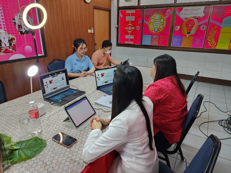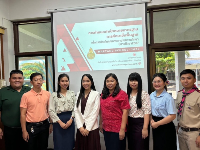 นางสาวนภัสนันท์ วงศ์ทาเครือ รองผู้อำนวยการโรงเรียนแม่แตง พร้อมด้วยคุณครูพิมม์ปภัส พูนพงศ์ภาสิน หัวหน้างานประกันคุณภาพการศึกษา และคณะครูกลุ่มงานบริหารวิชาการเข้านำเสนอค่าเป้าหมายของสถานศึกษา ตามปฏิทินในการติดตามตรวจสอบมาตรฐานการศึกษาของสถานศึกษา
