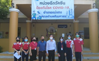 วัน พฤหัสบดี ที่ 14 ตุลาคม พ.ศ.2564 ดร.วัลภมาภรค์ อาจนาเสียว ผู้อำนวยการโรงเรียนแม่แตง พร้อมด้วยนายเฉลิมพล ดอนดี , นางสาวขวัญชนก อุ่นสกล รองผู้อำนวยการ และคณะครูโรงเรียนแม่แตง นำนักเรียนในระดับชั้นมัธยมศึกษา ปีที่ 1 - 6 ที่ประสงค์เข้ารับการฉีดวัคซีนไฟเซอร์ (Pfizer) ณ หน่วยฉีดวัคซีนป้องกันโรค COVID-19 เทศบาลตำบลสันมหาพน อำเภอแม่แตง จังหวัดเชียงใหม่ |