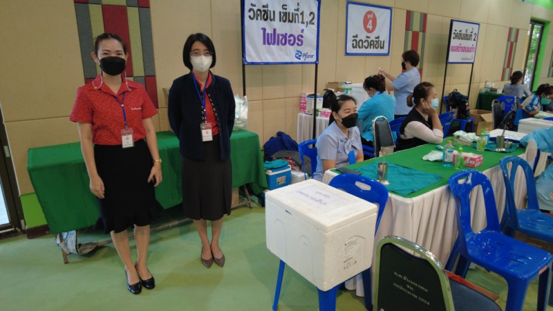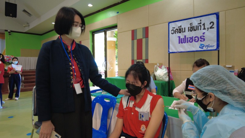 ผู้อำนวยการ รองผู้อำนวยการ และคณะครู นำนักเรียนในระดับชั้นมัธยมศึกษา ปีที่ 1 - 6 เข้ารับการฉีดวัคซีนไฟเซอร์ (Pfizer)