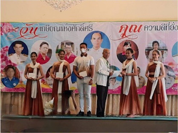 คณะผู้บริหาร คณะครู และนักเรียนโรงเรียนแม่แตงเข้าร่วมงานและมอบขอที่ระลึกแด่ผู้เกษียณ ในงานแสดงมุทิตาจิตชมรมลูกจ้าง สพม.เชียงใหม่