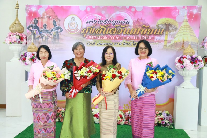 วันพุธที่ 18 กันยายน 2565 โรงเรียนแม่แตงนำโดยนายธีรวิทย์ สุวรรณา ผู้อำนวยการโรงเรียนแม่แตง พร้อมด้วยนายเฉลิมพล ดอนดี รองผู้อำนวยการโรงเรียนแม่แตง และนางสาวนภัสนันท์ วงศ์ทาเครือ รองผู้อำนวยการโรงเรียนแม่แตง นำคณะครูอาวุโสผู้เกษียณอายุราชการของโรงเรียนแม่แตง ประจำปีการศึกษา 2567 จำนวน 4 คน ได้แก่ ครูนัยน์ปพร ดวงแก้ว ครูเบญจศีล ชื่นจิตต์ ครูศรีมา ชมเพื่อน และครูสายพิณ ไชยวรรณ์ เข้าร่วมกิจกรรมการอบรมการพัฒนาข้าราชการครูและบุคลากรทางการศึกษา และยกย่องเชิดชูเกียรติให้แก่ข้าราชการครูและบุคลากรทางการศึกษา โดยมีวัตถุประสงค์เพื่อให้ข้าราชการครูและบุคลากรทางการศึกษาในสังกัดให้เป็นบุคคลแห่งการเรียนรู้ มีสมรรถนะในการปฏิบัติงานและการดำรงตนในยุคการเปลี่ยนแปลงได้อย่างเหมาะสมและมีความสุข ยกย่องเชิดชูเกียรติข้าราชการครูและบุคลากรทางการศึกษาในสังกัดที่ประพฤติปฏิบัติตนเป็นแบบอย่างที่ดีของการเป็นข้าราชการที่ดี สมควรได้รับรางวัลยกย่องเชิดชูเกียรติ โดยได้รับเกียรติจาก ดร.อัจฉรา ช่วยนุ่ม ผู้อำนวยการสำนักงานเขตพื้นที่การศึกษามัธยมศึกษาเชียงใหม่ เป็นประธานพิธี กล่าวมุทิตาจิตแด่ผู้เกษียณอายุราชการ พร้อมทั้งกล่าวยกย่องเชิดชูเกียรติและมอบใบประกาศเกียรติคุณบัตร ให้แก่ ข้าราชการครูและบุคลากรทางการศึกษาที่เกษียณอายุราชการ จำนวน 73 คน ประกอบด้วย ผู้อำนวยการสถานศึกษา 5 คน ข้าราชการครู 65 คน บุคลากรทางการศึกษา 1 คน และลูกจ้างประจำ 2 คน ณ ศูนย์วิทยบริการดารารัศมีชั้น 3 โรงเรียนยุพราชวิทยาลัย อำเภอเมือง จังหวัดเชียงใหม่