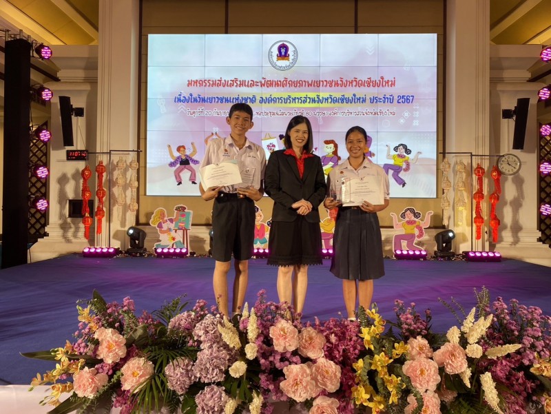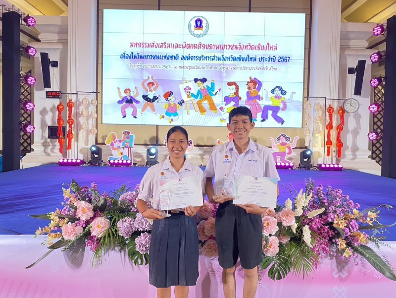 ยินดีให้กับนักเรียนที่ได้รับโล่เกียรติคุณเยาวชนจิตอาสาและเยาวชนดีเด่น อบจ.เชียงใหม่ ประจำปี 2567 เนื่องในวันเยาวชนแห่งชาติ
