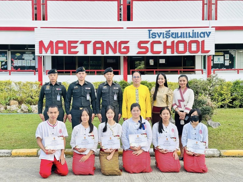 นายธีรวิทย์ สุวรรณา ผู้อำนวยการโรงเรียนแม่แตง พร้อมด้วยนางสาวนภัสนันท์ วงศ์ทาเครือ รองผู้อำนวยการโรงเรียน คณะครูโรงเรียนแม่แตง และชุดปฏิบัติการกิจการพลเรือน(กองพันประจำอำเภอ) ซึ่งได้รับมอบหมายจากผู้บังคับกองพันทหารราบที่ 2 กรมทหารราบที่ 7 ดำเนินการมอบเกียรติบัตรให้แก่นักเรียนที่เข้าร่วมกิจกรรมประกวดวาดภาพ “สร้างศิลป์เพื่อภูมินทร์และถิ่นไทย” ประจำปี 2567 รอบภูมิภาค เพื่อเป็นการสืบสานพระราชปฏิธานของ พระบาทสมเด็จพระบรมชนกาธิเบศร มหาภูมิพลอดุลยเดชมหาราช บรมนาถบพิตร ฝึกซ้อมโดยครูชนาภา นุวงศ์ษา กลุ่มสาระการเรียนรู้ศิลปะ โรงเรียนแม่แตง