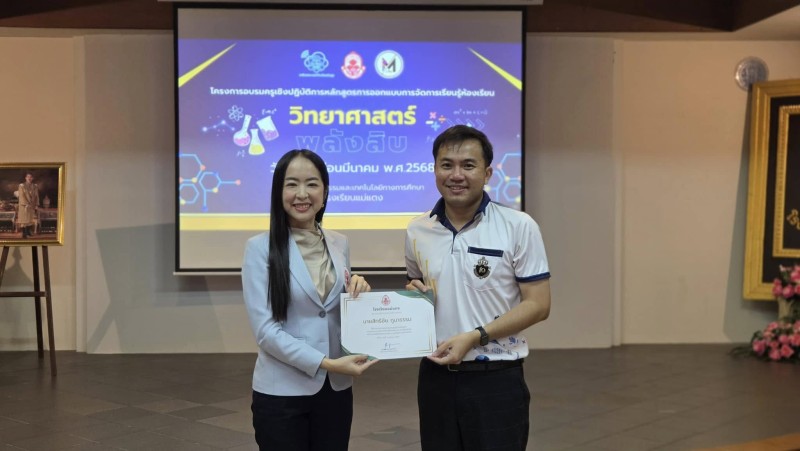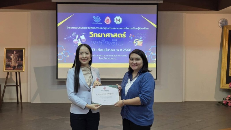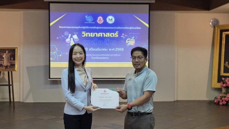วันที่ 13 มีนาคม พ.ศ. 2568 โรงเรียนแม่แตง นำโดย ท่านรองผู้อำนวยการนภัสนันท์ วงศ์ทาเครือ รองผู้อำนวยการโรงเรียนแม่แตง จัดการอบรมตามโครงการอบรมครูเชิงปฏิบัติการหลักสูตรการออกแบบการจัดการเรียนรู้ห้องเรียนวิทยาศาสตร์พลังสิบ เพื่อพัฒนาคุณภาพการจัดการเรียนการสอนในห้องเรียนวิทย์พลังสิบให้กับครูในโรงเรียนแม่แตง