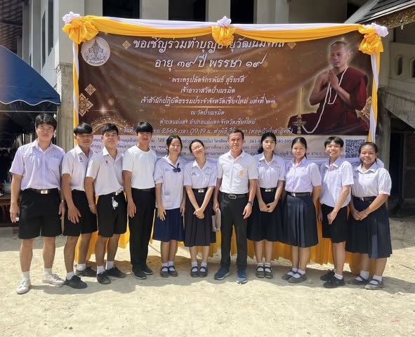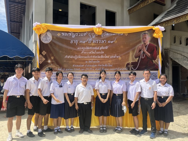 โรงเรียนแม่แตง เข้าร่วมทำบุญอายุวัฒนมงคล อายุ 39 ปี 19 พรรษา ทำบุญสมโภชตราตั้งพระอุปัชฌาย์ พระครูปลัดจักรพันธ์ สุริยํสี เจ้าอาวาสวัดป่าเนรมิต